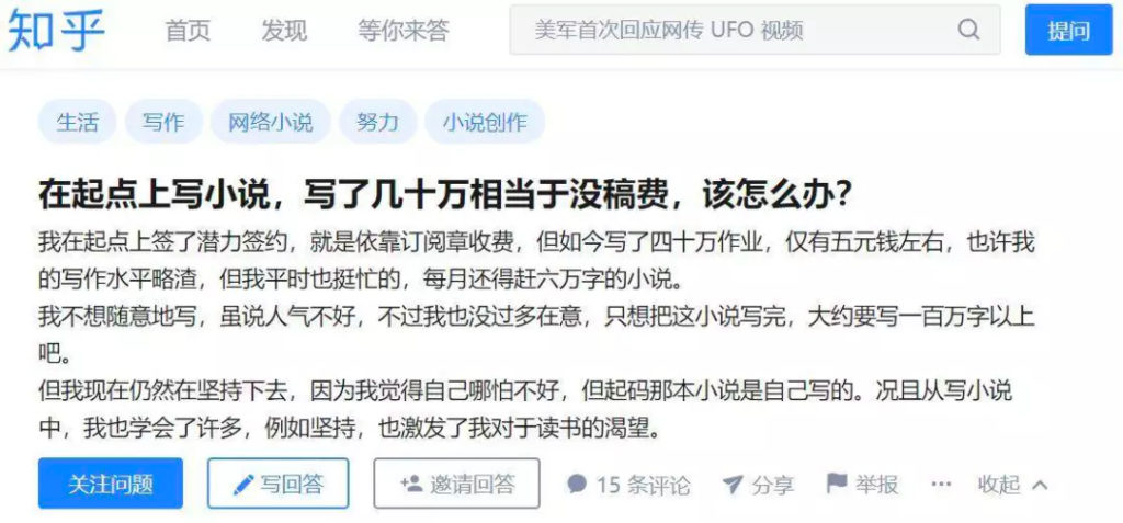 △ 知乎上许多作家作者的收入还达不到翻译的水平