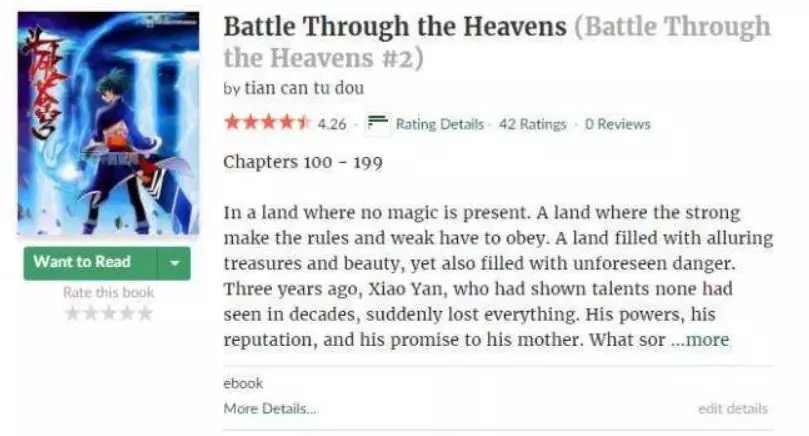 比如《斗破苍穹》这本作家神作在goodreads上获得了4.26和4星半的超高评分,往下翻翻还会有读者的读后感: